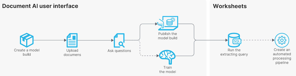 It is particularly valuable for organizations dealing with large amounts of unstructured data, like most big companies. The goal is to help convert the information contained in the documents into actionable insights, to streamline business processes, and to make high quality information readily available to knowledge workers. Here is an illustration of the process: